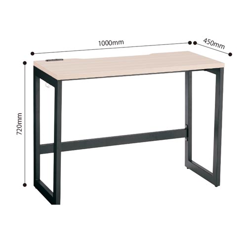 働き方が広がるデスクシリーズ。デスク、フリーアドレスデスク、ハイデスク、ミーティング用テーブル、シェルフのカラーリングを統一できます。●種別/幅1000●タイプ/脚:ブラック●カラー/天板:ナチュラル●外寸法/幅1000×奥行450×高さ720mm●下肢空間寸法/幅947×奥行328×高さ645mm●天板厚さ/25mm●質量/15.4kg●材質/天板:(表面)メラミン化粧板(エッジ)PVC、脚部・フレーム・配線受け:スチール(粉体塗装)、フック:スチール(クロームメッキ仕上げ)、コンセント:合成樹脂、アジャスター:PP●耐荷重/天板:約40kg●機能/2個口コンセント、配線受け、フック(1個)●付属工具/六角レンチ●生産国/中国●単位/1台