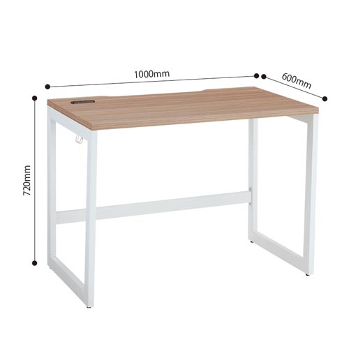 働き方が広がるデスクシリーズ。デスク、フリーアドレスデスク、ハイデスク、ミーティング用テーブル、シェルフのカラーリングを統一できます。●種別/幅1000●タイプ/脚:ホワイト●カラー/天板:ウォルナット●外寸法/幅1000×奥行600×高さ720mm●下肢空間寸法/幅947×奥行478×高さ645mm●天板厚さ/25mm●質量/19.7kg●材質/天板:(表面)メラミン化粧板(エッジ)PVC、脚部・フレーム・配線受け:スチール(粉体塗装)、フック:スチール(クロームメッキ仕上げ)、コンセント:合成樹脂、アジャスター:PP●耐荷重/天板:約40kg●機能/2個口コンセント、配線受け、フック(1個)●付属工具/六角レンチ●生産国/中国●単位/1台