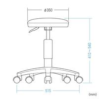 抗菌、耐アルコールレザーを使用した医療向けチェア。ブラック。●カラー/ブラック●材質/背:なし●質量/5.5kg●昇降方式/ガス圧リフト装置●ロッキング方式/なし●付属工具/なし●生産国/台湾●保証期間/1年●外寸法/ヨコ515×タテ515×タカサ410から540mm●座面高さ/410から540mm●座面寸法/直径350mm●材質/座:ビニールレザー張り(PVC)●材質/脚:ナイロン●材質/キャスター:ナイロン●ウレタン種類/ウレタンフォーム●ロッキング強さ調節/なし●背角度調節/なし●背高さ調節/なし●座奥行き調節/なし●座角度調節/なし●ランバーサポート/なし●ヘッドレスト/なし●生地仕様/ビニールレザー張り(PVC)●組立必要人数/1人●組立時間/10分●必要工具/なし●単位/1脚