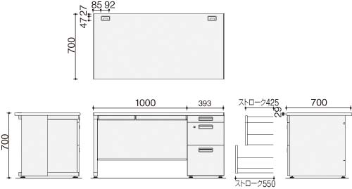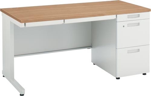 コクヨ製スチールデスク!●カラー/天板:ラスティックミディアム本体:ホワイト●外寸法/幅1400×奥行700×高さ700mm●下肢空間寸法/幅960×奥行605×高さ622mm●天板厚さ/29mm●引出内寸法/センター引出:幅(右)505(左)355×奥行382×高さ35mm、上段:幅328×奥行435×高さ59mm、中段:幅318×奥行435×高さ265mm、下段:幅318×奥行540×高さ265mm●質量/46.7kg●材質/天板:(表面)メラミン化粧板(芯材)スチール(エッジ)サイド・後ろ:ABS、脚:スチール(焼付塗装)、袖:(表面)スチール(焼付塗装)、鏡板:ABS、アジャスター:PA●耐荷重/天板:約150kg、センター引出:約5kg、袖引出:(上段)約4kg(中段)約20kg(下段)約20kg●機能/アジャスター機能、配線機能(配線穴:2個)●引出レール仕様/(上・中段)シングルレール(下段)ダブルサスペンションレール(フルオープン)●引出ロック方法/(袖)オールロック機構●付属品/ペントレー(1個)、仕切板(2枚)、鍵(2個)●生産国/日本●単位/1台