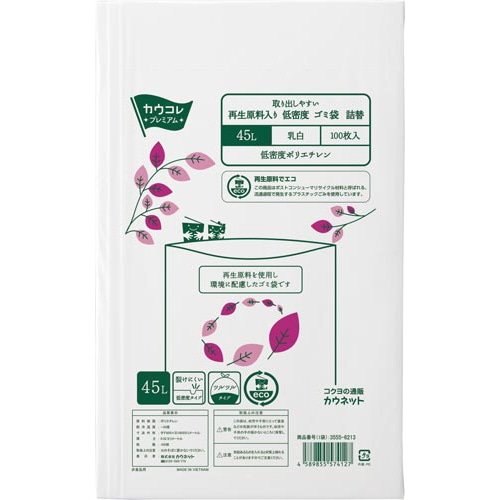 | 商品名 | 取り出しやすい再生原料入LDゴミ袋詰替45L乳×4 |