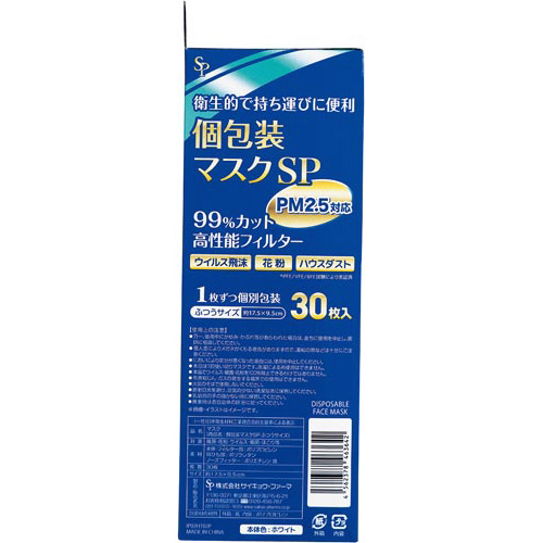 | 商品名 | 個包装マスク「SP」ふつう 30枚×30 |