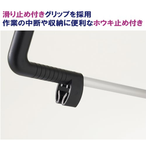 樹脂製で超軽量な移動清掃に適したチリトリ。取っ手部分には滑り止め加工とホウキをセットできるクリップ付き。●寸法/285×160×870mm●質量/800g●材質/ハンドル:アルミパイプ、ボディ:ポリプロピレン、フレーム:アルミニウム、グリップ:ポリプロピレン、先ゴム:ポリプロピレン・EVA●単位/1台