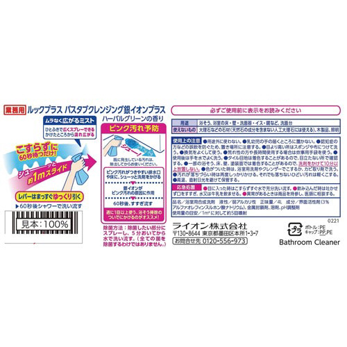 ※用途外に使わない。※乳幼児の手の届くところには置かない。※認知症の方の誤飲を防ぐため、置き場所に注意する。※目より高い所はスポンジや布につけて洗う。※使用後は手で水でよく洗う。※タイル目地は着色することがあるので、目立たない所で確認する。※一部の浴そう、床、壁、塗装面では着色することがあるので、洗剤をかけて10分以上放置しない。※色がついた時は、浴室用洗剤やクレンザーでこするか、カビ取り剤で洗う。※汚れが落ちづらい時は再度しっかりかける。それでも落ちないひどい汚れは軽くこする。※高温、直射日光を避けて保管する。
