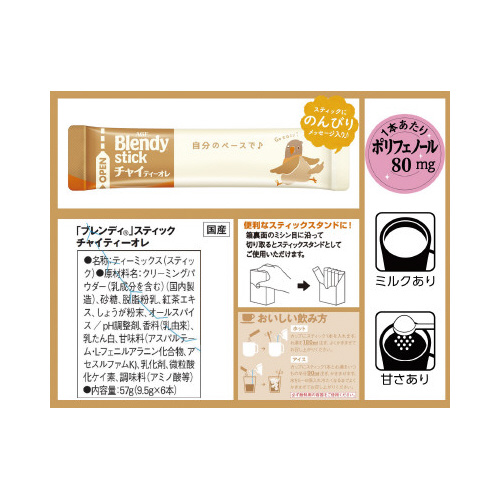 | 商品名 | 「ブレンディ」 スティック チャイティーオレ 6本※ |
