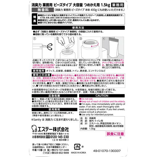 | 商品名 | 消臭力業務用ビーズ大容量詰替 無香料1.5kg×6 |