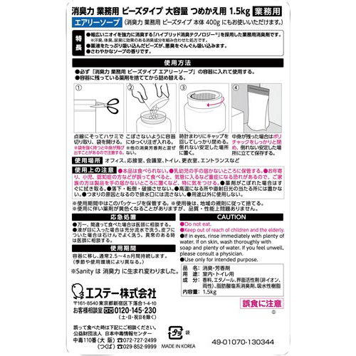 | 商品名 | 消臭力ビーズ詰替 エアリーソープ1.5kg×6 |