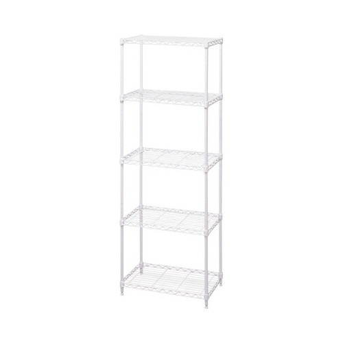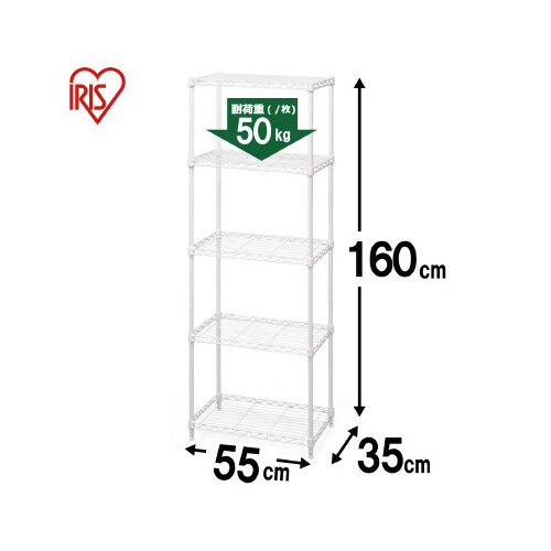 【5段】【幅55×奥行35×高さ160cm】【ポール直径19mm】省スペースでも、たくさん収納できるハイタイプのカラーメタルラックです。別売のキャスターを取り付けると移動も簡単に行えます。●外寸法/高さ1600×幅550×奥行350mm●材質/棚板・ポール:スチール(粉体塗装)、棚板固定部品:ABS樹脂、アジャスター:スチール、ナイロン樹脂●質量/9.7kg●耐荷重/全体:100kg、棚板1枚あたり:50kg●生産国/ベトナム●カラー/ホワイト●単位/1台