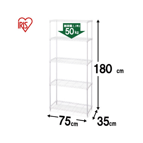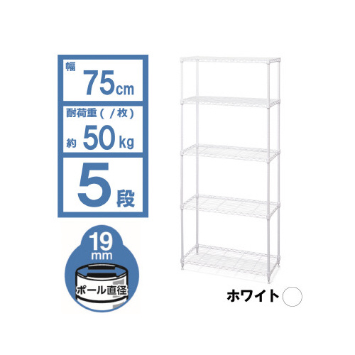| 商品名 | カラーメタルラック 幅750×高1800 ホワイト |