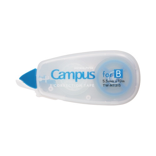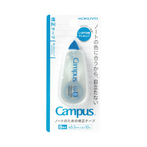 キャンパスノートの用紙色と同色のため、修正したところが目立たない!罫線幅に合わせたテープ幅で、ぴったり修正しやすい!テープがきれいに切れるメタルプレート搭載ヘッドを採用。●テープ幅/5.5mm●テープ長さ/10m●材質/ケース:再生ABS・再生PS●種別/B罫用●機能/開閉カバー付き●仕様/使い切りタイプ●テープ色/キャンパスノートの中紙の色●カラー/ブルー●本体寸法/ヨコ69×タテ32×厚さ17mm●単位/1個