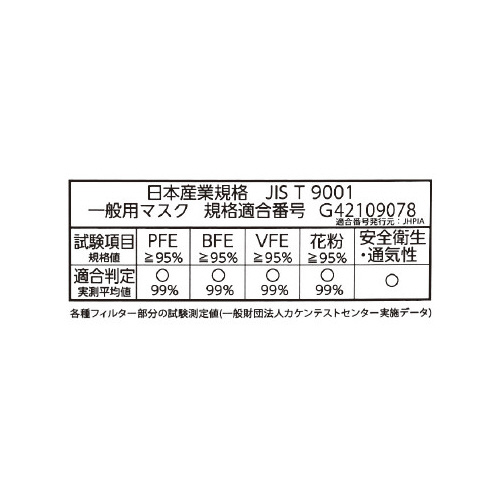 ※【返品に関するご注意】開封後はお客様のご都合による返品はお受けできません。※BFE(細菌ろ過効率)、PFE(微粒子ろ過効率)、VFE(ウイルスろ過効率)は、フィルターの細菌や微粒子遮断効率を示す数値で、数値が高いほど遮断率に優れています。※またこれは、あくまでもフィルターの性能でありマスクを使用することにより完全に細菌や微粒子の侵入を防止できるとは限りません。※【返品に関するご注意】開封後はお客様のご都合による返品はお受けできません。