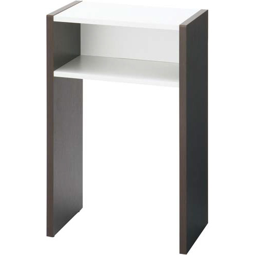 記載台としても使える電話台。●カラー/ダークブラウン●外寸法/幅500×奥行300×高さ800mm●内寸法/収納部:幅450×奥行270×高さ180mm●材質/(表面)メラミン化粧板(芯材)パーティクルボード(エッジ)PVC●質量/13.2kg●耐荷重/棚板1枚あたり:約10kg●機能/アジャスター機能●生産国/中国●単位/1台