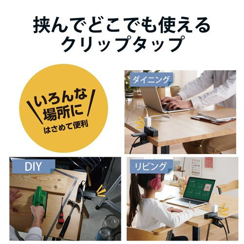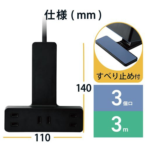 | 商品名 | クリップタップ 3個口 3m 雷ガード付 ブラック |