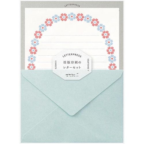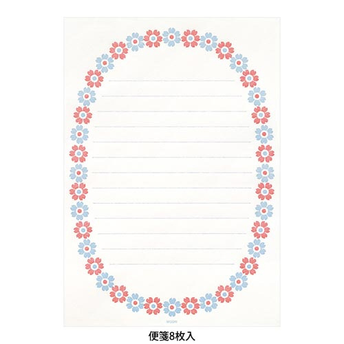 | 商品名 | レターセット 活版 花フレーム柄 水色 86478 |