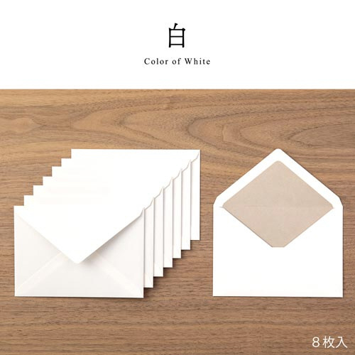 気分や情景を色に込めて贈る封筒です。その日の気分、伝えたい情景から連想する色を選んで手紙を書けます。カジュアルシーン・ビジネスシーンどちらの場面でもお使いいただけるアイテムになっています。●寸法/パッケージ/タテ120×ヨコ168×奥行5mm本体/タテ114×ヨコ162mm●仕様/8枚入〔PP袋入〕●単位/1パック