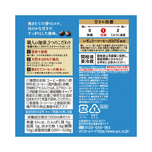 商品名 職人の珈琲 低糖 900ml 12本※