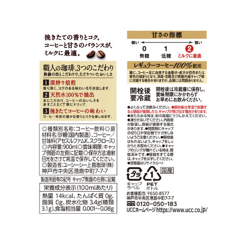 | 商品名 | 職人の珈琲 ミルクに最適 900ml 12本※ |