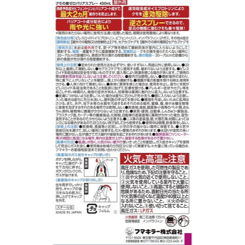 | 商品名 | クモの巣ゼロバリアスプレー 450ml |