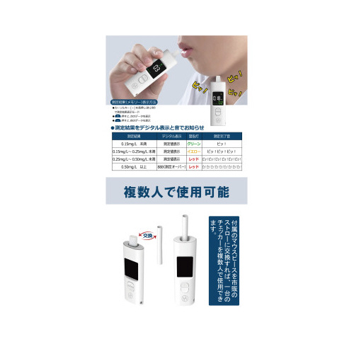 ※計測値が法基準以下であっても、必ずしも法執行を免れるものではありません。※ポータブルアルコールチェッカーは、飲酒の有無を判断するための一つの判断材料であって、運転の可否を判断するものではありません。※【返品に関するご注意】開封後はお客様のご都合による返品はお受けできません。
