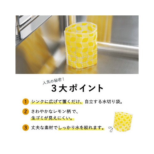 ※排水用の穴は開けずにそのまま使用してください。※カレーやシチューを一度に流すと目詰まりすることがありますのでご注意ください。※火のそばに置かないでください。※水切りゴミ袋以外の用途に使用しないでください。