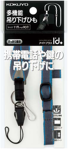 携帯電話や鍵などを吊り下げることができる多機能吊り下げひも。●カラー/青・グレー●寸法/幅11mm×長さ約90cm●材質/ひも:SP、フック:再生POM、調節パーツ・接合パーツ:PP、マツバパーツ:POM、リング・平ナスカン:スチール(ニッケルメッキ)●付属品/多機能パーツ(ナフ-M1N)付き●単位/1本