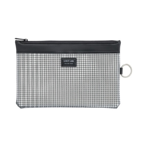 メッシュの入った透明素材の丈夫なケース。透明素材なので中身が一目瞭然。吊り下げ用フック付きで、保管にも便利です。●サイズ/155×240mm●種別/B6●カラー/ブラック●材質/本体:ビニール、リングフック:ポリプロピレン●仕様/吊り下げ用リングフック付、マチなし●適正収容枚数/コピー用紙約150枚●単位/1枚