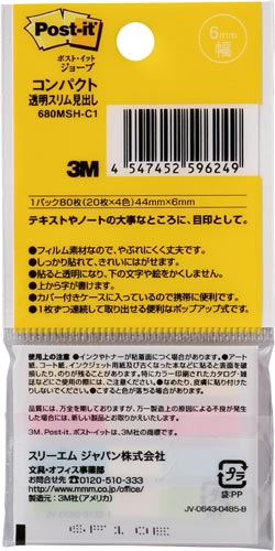 | 商品名 | ポストイット ジョーブ 6mm幅 4色 |