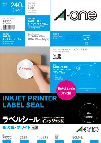 | 商品名 | 光沢紙ラベル IJP A4 丸型24面 10枚 |