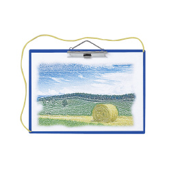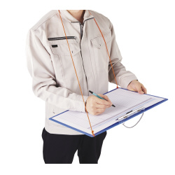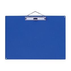 強力な金属クリップで用紙をしっかり止めます。文字が書きやすい極小の砂目です。吊り下げ用のチェーンが付いています。ペンホルダー付き。●サイズ/W440×D320×H20mm●カラー/青●寸法/420×297mm(使用紙サイズ)●材質/再生ABS●ペンホルダー/有●仕様/紐通し穴付、吊り下げ用チェーン付●単位/1枚