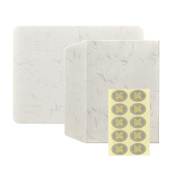 あらゆる場面で使用できる挨拶状・案内状セットです。手書きはもちろんプリンタでも印刷可能。レイアウトも専用WEBサイトから文例テンプレートを無料でダウンロード。自由に編集できます。●寸法/封筒(洋2)114×162mm、二つ折りカード155×206mm●仕様/1セット10名様分●紙質/大礼風模様の和紙風●セット内容/封筒(洋2)10枚、二つ折りカード10枚、封緘シール1枚(10片付)●仕様/レーザープリンタ・インクジェットプリンタ印刷可能。●単位/1セット