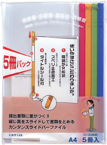 スライドバーファイルA4縦20枚とじ 色込5冊
