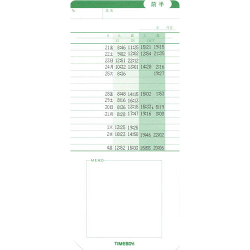 | 商品名 | タイムボーイ Nカード 100枚入 |