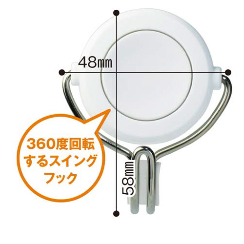 限られたスペースを有効利用できる薄型フォルム。360度回転するスイングフック!●寸法/幅48×奥行23×高さ58mm●奥行/23mm●可動角度/可動角度180度(フック部分)●回転角度/可動回転360度●材質/本体:ABS・再生POM、フック:スチール●耐荷重/約3kg(水平方向:約2kg)●カラー/白●注釈/※壁面によっては、表示荷重を維持できない場合がありますのでご注意ください。●単位/1個