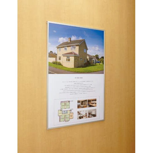 ネジ止め式だからスリムでも頑丈なアルミフレームパネルです。フレームは筋入、筋無のリバーシブルタイプ。●厚さ/8mm●フレーム幅/11.5mm●材質/アルミ、表面:PET(0.6mm厚)●質量/780g●付属品/吊下げ用テグス糸●寸法/タテ841×ヨコ594mm●仕様/A1●タテヨコ仕様●単位/1セット(10枚入)