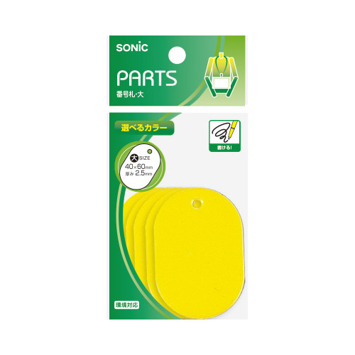 商品名 番号札 大 無地 黄 60×40mm 10個入