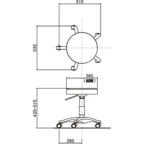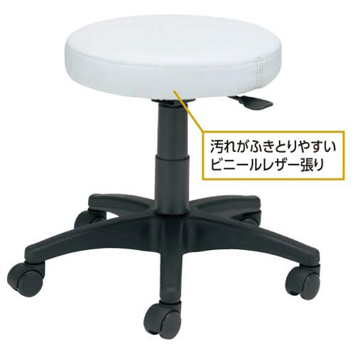 汚れがふきとりやすいビニールレザー張りの定番スツール。スタック不可商品です。●カラー/ホワイト●外寸法/幅510×奥行535×高さ425ー515mm●座面寸法/直径385mm●材質/座:(張り地)PVCレザー(中身)ウレタン、脚:PP、キャスター:ウレタン(双輪)●質量/5.2kg●昇降方式/ガス圧式●生産国/中国●単位/1脚