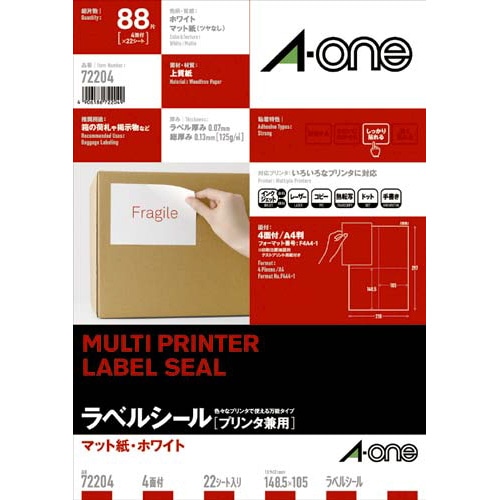 | 商品名 | 上質紙ラベル 兼用 A4 4面 22枚 |