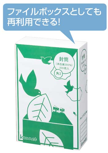 | 商品名 | 再生紙100%クラフト封筒 角2 200枚BOX入 |