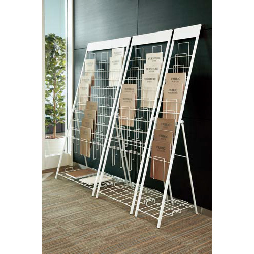 10段仕様で大容量収納。マグネットを使用できる便利な大きめのヘッドが特徴。A4サイズの用紙が収納OK。こぼれ防止のついたストック棚。折りたたむとコンパクトになります。●種別/10段 1列●カラー/ホワイト●外寸法/幅278×奥行438×高さ1495mm●内寸法/1段あたり:幅238×奥行20×高さ180mm●マグネットスペース高さ/100mm●材質/スチール(粉体塗装)●質量/4.26kg●耐荷重/収納部(1段あたり):約1kg、ストック棚:約2kg●機能/ストック棚機能、折りたたみ機能●仕様/折りたたみ式、A4パンフレット●生産国/中国●組立/お客様組立商品●単位/1台