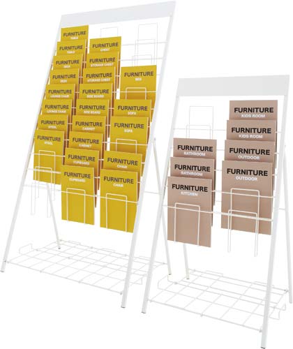 10段仕様で大容量収納。マグネットを使用できる便利な大きめのヘッドが特徴。A4サイズの用紙が収納OK。こぼれ防止のついたストック棚。折りたたむとコンパクトになります。●種別/10段 3列●カラー/ホワイト●外寸法/幅770×奥行438×高さ1495mm●内寸法/1段あたり:幅238×奥行20×高さ180mm●マグネットスペース高さ/100mm●材質/スチール(粉体塗装)●質量/8.26kg●耐荷重/収納部(1段あたり):約1kg、ストック棚:約6kg●機能/ストック棚機能、折りたたみ機能●仕様/折りたたみ式、A4パンフレット●生産国/中国●単位/1台