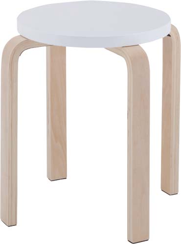 優しい座面カラーが学校などに最適!脚裏には床を傷つけないフエルト付き。4脚までスタッキング可能です。●カラー/ホワイト●外寸法/幅420×奥行420×高さ440mm●座面寸法/直径340mm●座面高さ/440mm●材質/座:積層合板(ウレタン塗装)、脚:積層合板、床接地面クッション材:フェルト●質量/2.7kg●スタック可能数/4脚●生産国/台湾●単位/1箱(4脚入)