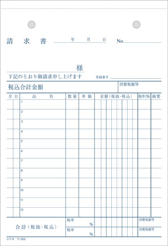 商品名 請求書B6タテ ノーカーボン ウ-322 50冊