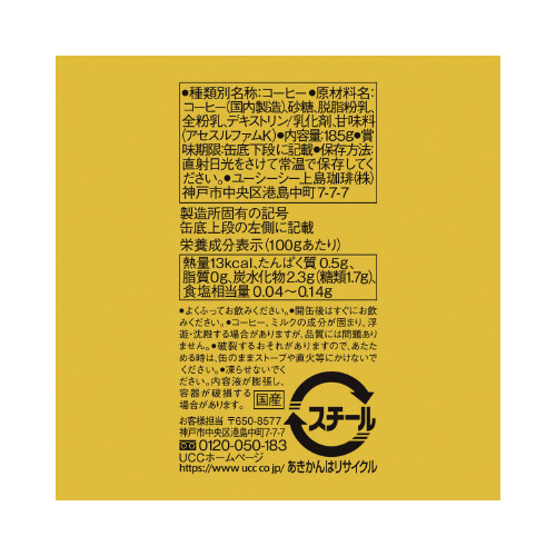 | 商品名 | UCC ブレンドコーヒー(微糖) 185g 30缶※ |