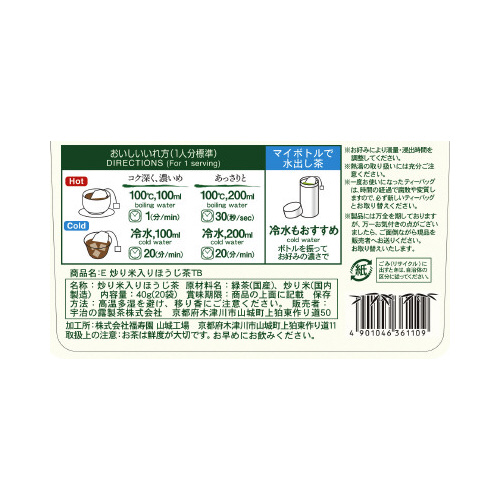 | 商品名 | 伊右衛門 炒り米入ほうじ茶TB 20バッグ×12※ |