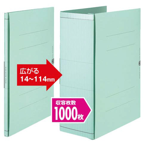 指1本でワンタッチ開閉可能な新設計とじ具採用!背に補強テープがついた長持ち設計。背幅をガバッと広げられます!●サイズ/A4タテ●寸法(タテ×ヨコmm)/303×220●カラー/紫●背幅/14-114mm●材質/表紙:色板紙(2枚重ね)(古紙パルプ配合)●表紙材質/ボード表紙(2枚重ね)●穴数/2穴(80mmピッチ)●収容寸法/1-100mm●収容枚数/約1000枚●機能/表紙をひもで固定できるひも穴付き●ひも穴・扉ひも種別/ひも穴付き●単位/1冊