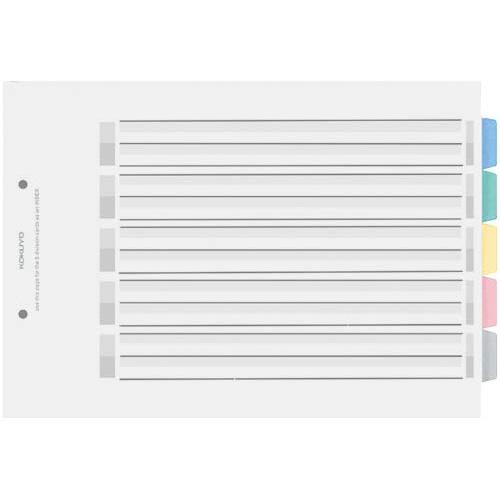 丈夫な透明PP製、長期の使用に最適。見出し部分とタイトル欄にも鉛筆で記入できます。●サイズ/A4ヨコ●種別/5山●寸法(タテ×ヨコmm)/210×297(+12)●穴数/2穴(80mmピッチ)●1組内容/5色5山見出し●材質/見出し:再生PP●インデックス有無/インデックス付き●1パック内容/1組入り●※()内は見出し高さ●単位/1パック(5組入)