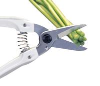CV線、ビニール・ゴムなどのホース類、アルミ、樹脂などの薄板をスムーズにカットします。刃が大きく開き、草花の束ね切りに最適。簡単安全ストッパー、すべりにくいエラストマーグリップ、剪定鋏に最適な高炭素刃物鋼を採用、開き幅調整機構、衝撃吸収クッション付き。●寸法/全長:192mm 刃長さ:42mm●カラー/ホワイト●質量/130g●材質/刃:高炭素刃物鋼、ハードクローム仕上げ 柄:PP、エラストマー●仕様/切断の目安:生木 直径9mm●単位/1本