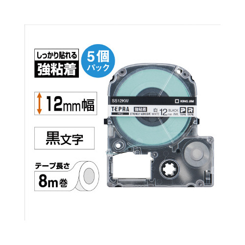 | 商品名 | テプラPROテープ強粘着白ラベル12mm黒文字×5 |
