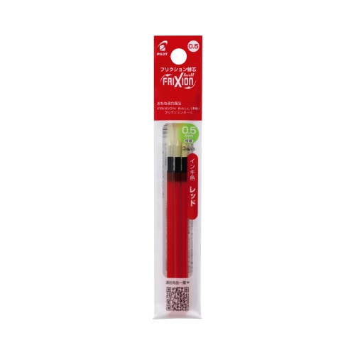 フリクションインキ替芯。フリクションボール3・4、フリクションスリムに対応。0.5mm径です。●ボール径/0.5mm●インク色/レッド●インク種類/フリクションインキ●種別/フリクションボール多色用●替芯種別/PL23●寸法/87.5mm●単位/1セット(3本入×5)