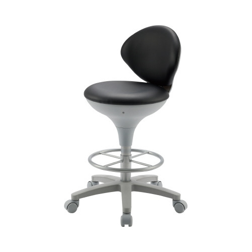 病院などで使える背もたれ付きスツールに足置きがついて更に便利に。●種別/ハイタイプ●カラー/ブラック●外寸法/幅520×奥行495×高さ845ー975mm●座面寸法/直径405mm●座面高さ/575から705mm●材質/張り地:PVCレザー、脚:PA、リング脚:スチール、キャスター:ナイロン(双輪)●質量/8kg●生産国/台湾●単位/1脚